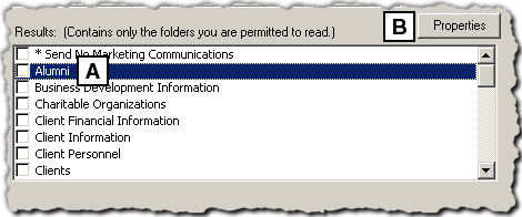 InterAction also displays any other folders of the selected class that contain the contact to which you have Read access. The check boxes in the first column next to each folder indicate whether the folder contains the contact.